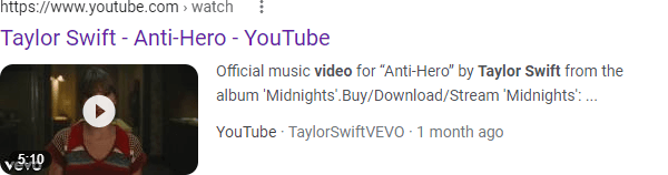 Like all carousel-based results, you can scroll horizontally to view more videos. Google’s mobile-first design philosophy has driven more of this format over time, as the combination of vertical and horizontal scrolling is more natural on mobile devices.