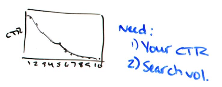 Number one, they really want to be able to predict ROI before they even dive in. They want assurances that if I invest in this, I’m going to get X in return, which there are a lot of, I think, problems with that inherently, but there are some ways you can get close to gauging what you’re going to get for your efforts. So what I would do in this situation is use your own website’s data to build yourself a click-through rate curve so that you know the click-through rate at your various rank positions.