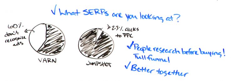 I think this was put out sometime last year by Varn Research, and it said that 60% of people, when they see ads on the search results, they don’t even recognize that they’re ads. That’s actually probably higher now that Google changed it from green to black and it kind of blends in a little bit better with the rest of it. But then this data from Jumpshot says that only about 2% to 3% of all search clicks go to PPC.