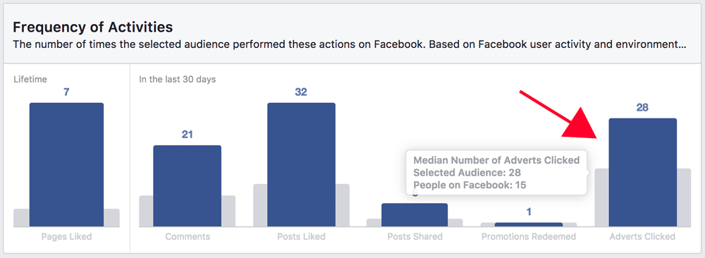 3. People in our audience are more likely to click on an advert than the average Facebook user.