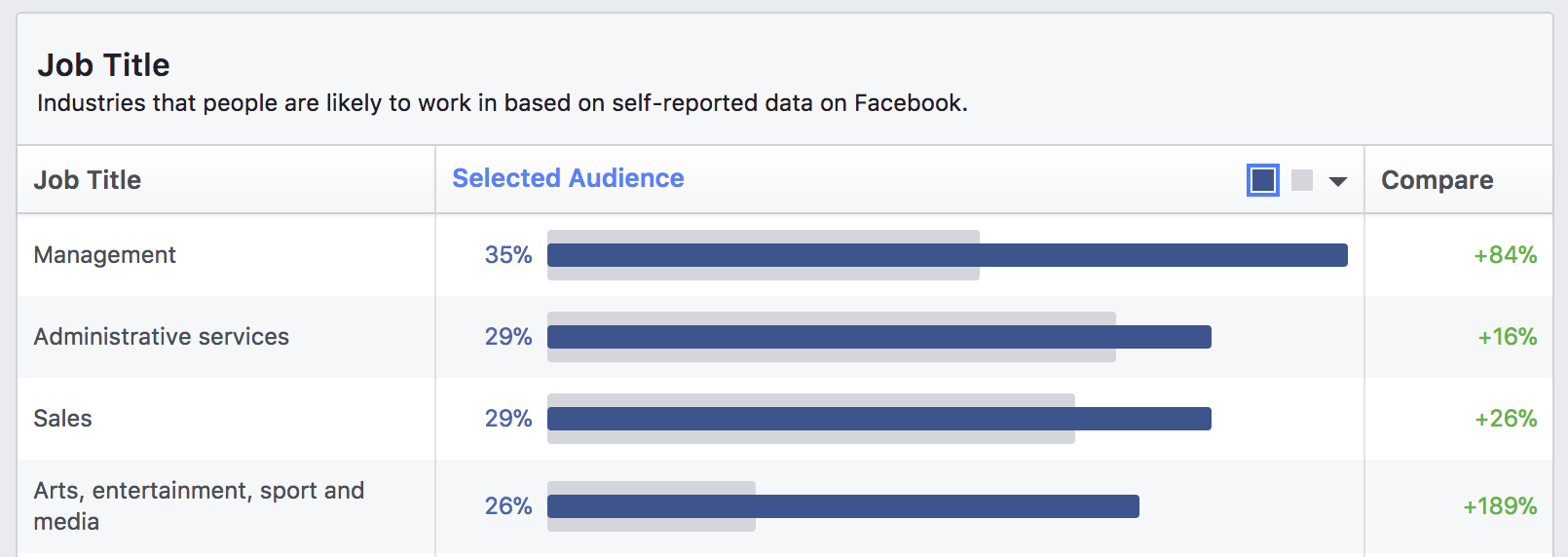 2. 35% of our audience work in management. This could help us to think about the language we use in out Facebook adverts as well as the story we tell.