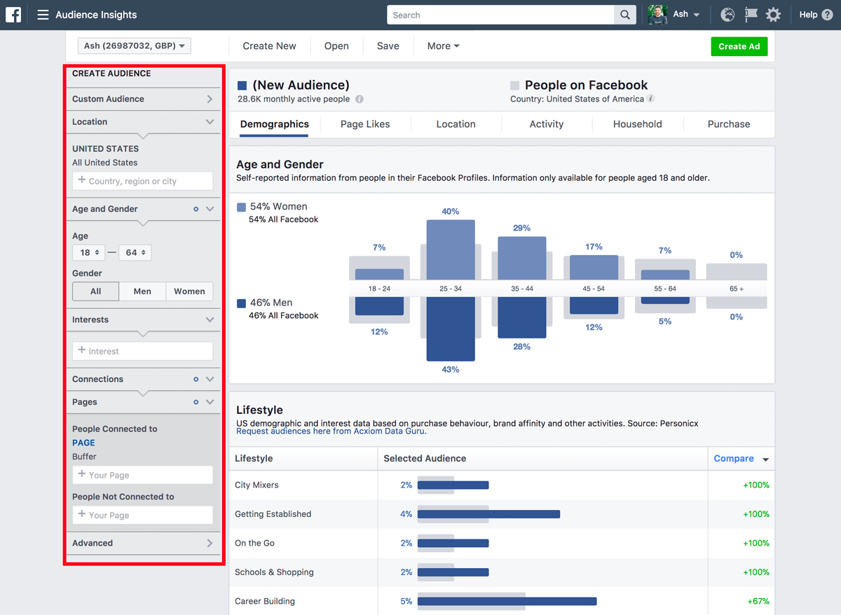 Audience Insights gives you the opportunity to learn more about a specific audience. For example, by checking out Buffer’s insights I was able to learn: