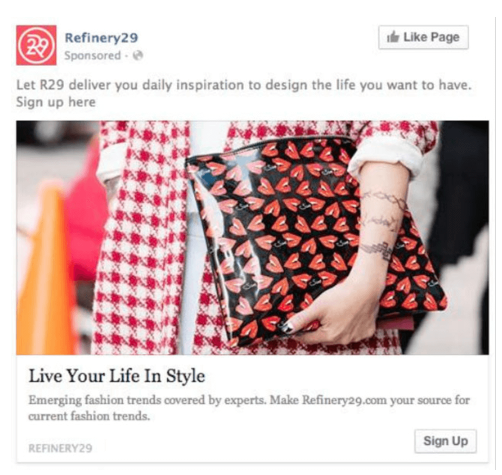 Take Refinery 29, an independent fashion and lifestyle website, for example. The brand generated two different Facebook ad campaigns, both aimed at bringing in new subscribers to their website.