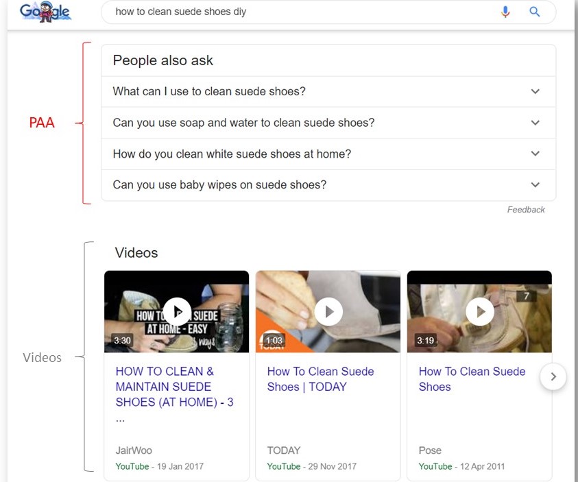 From an opportunity standpoint, you can optimize your YouTube and video results to be eligible to appear in PAAs.
