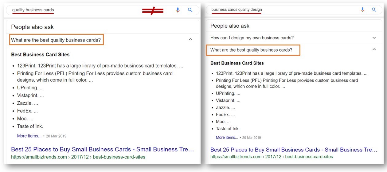 3. Different questions listed in a PAA triggered by different keywords can show the same result.