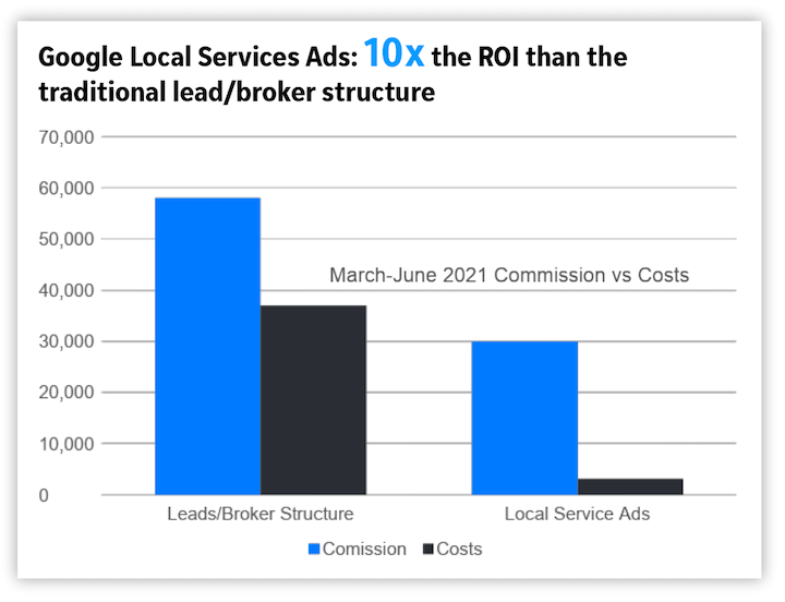 Local Service Ads (LSAs) are a hero channel for local brands looking for more cost-effective leads. This real estate client achieved 10X the ROI than the conventional real estate lead flow: