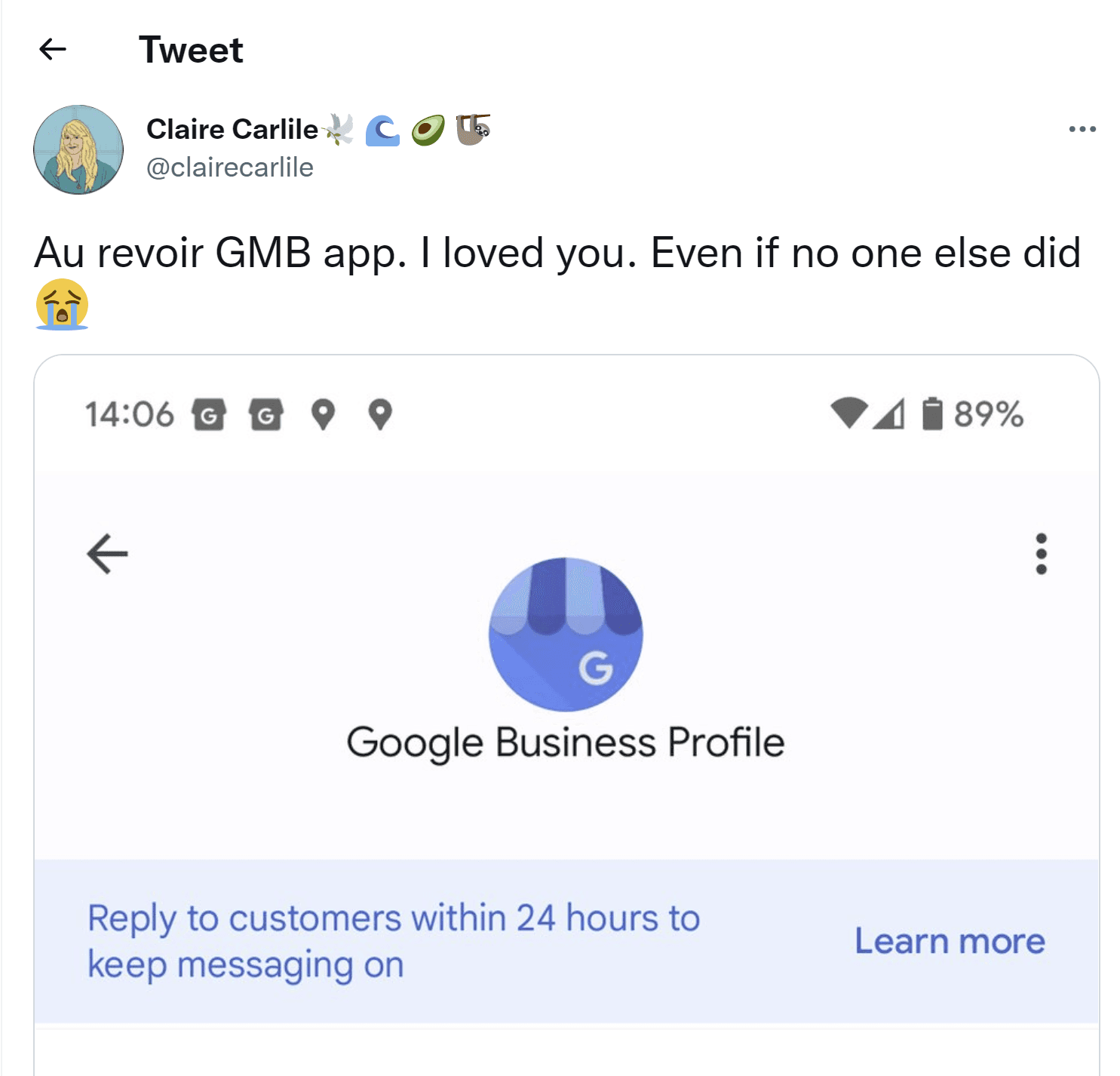 I extend my condolences to all local SEOs who, like Claire Carlile, are bidding a teary adieu to the Google My Business mobile app and are being prompted to switch to updating listings via search and Maps, instead.
