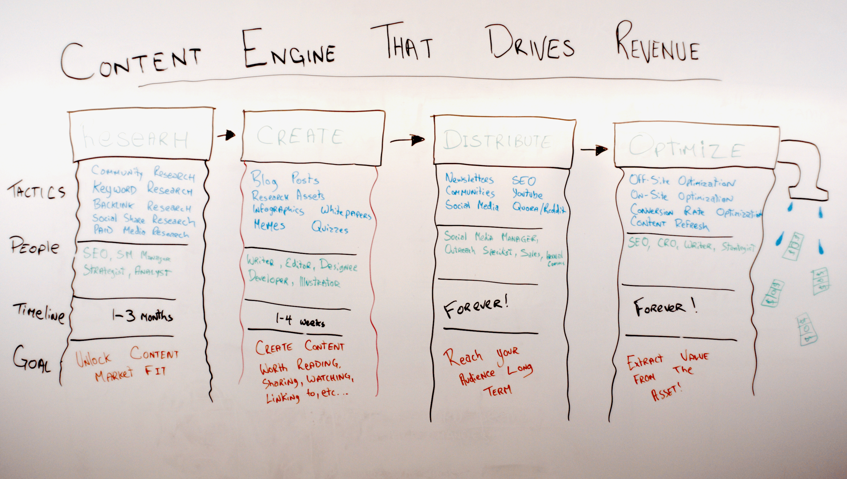 In today’s Whiteboard Friday, MozCon speaker and content marketing expert Ross Simmonds walks you through his method for creating a content marketing engine that will ultimately make you money, rooted in four simple steps: research, creation, distribution, and optimization.
