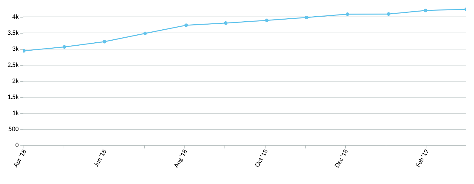 Remember: This was part of a campaign of 9 pieces, and it launched mid-March, with most 1st order metrics, or leading indicators, coming through within a month (and no major technical changes around this time). There is some signal in among the noise here. Check out this graph, showing the number of keywords ranked for, according to Ahrefs: