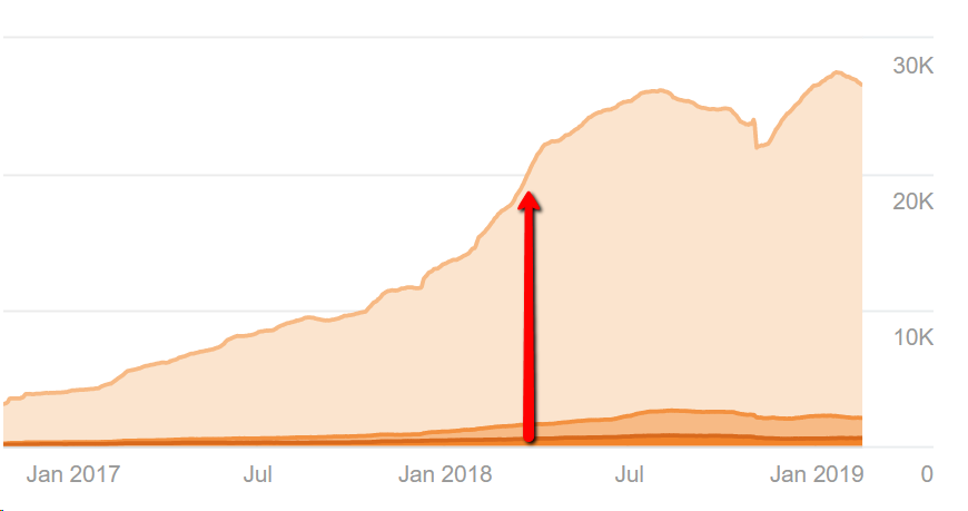 See what I mean about noise? And I’m saying this is an unusually clear cut case. We actually built nine creative pieces, with link acquisition as one of the goals, for this client, over a two-year period. We’ve talked before about the campaign as a whole, here. There’s one that stands out in both graphs, though which is the one that launched in March 2018.