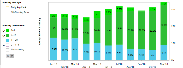Here are the rankings for the client’s (fairly ambitious!) target keywords: