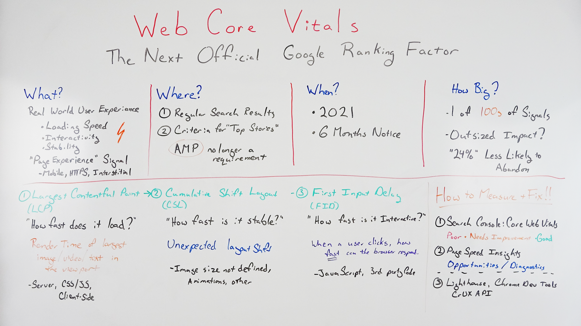 There’s a new ranking factor in town: Core Web Vitals. Expected in 2021, this Google-announced algorithm change has a few details you should be aware of. Cyrus Shepard dives in this week on Whiteboard Friday.