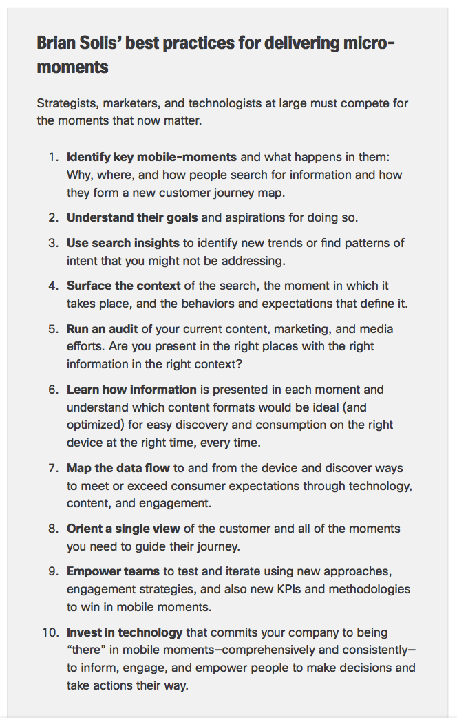 “So when you start to swipe and pinch and zoom and use your voice to navigate, it changes how you go through the customer journey. Micro-moments are about what the customer journey looks like in a mobile only setting.”