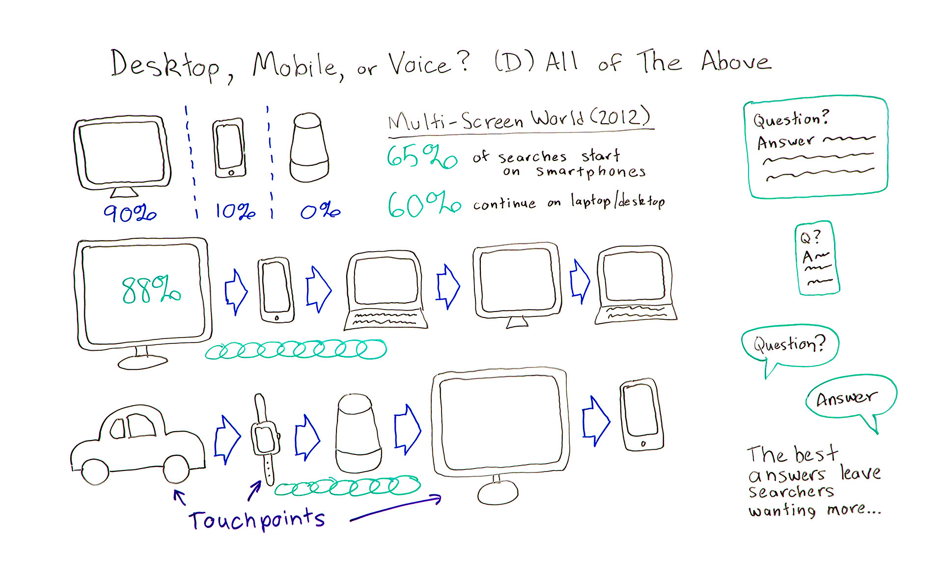 The other mistake I think we make is the idea that these are three separate audiences. There are people who come to our site on desktop, people who come to our site on mobile, people who come to our site on voice, and these are three distinct groups of people. I think that’s incredibly wrong, and that leads to some very bad ideas and some bad tactical decisions and some bad choices.