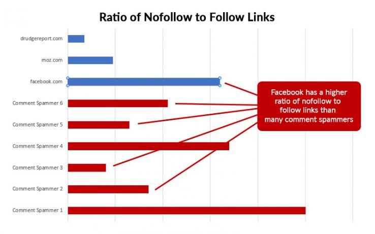 The first surprising example was the ratio of nofollow to follow links. It seems pretty straightforward that comment, forum, and other types of spammers would end up accumulating lots of nofollowed links, thereby leaving a pattern that is easy to discern. Well, it turns out this is not true at all.