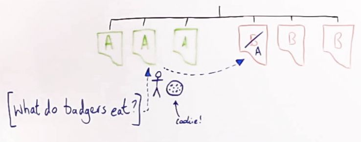 Some pages are unchanged. Some pages get the hypothesis applied to them. As far as Google is concerned, that’s the end of the story, because on any individual request to these pages that’s what we serve back. But the critically important thing here is I’ve got my little character. This is a human browser performs a search, “What do badgers eat?”
