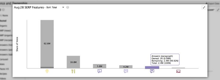 If it’s the features in your space that you’re after, you’ll have ’em. The number of keywords producing each feature? You’ll have that, too. The share of voice they’re driving and how much you’re owning? Of course, and more.