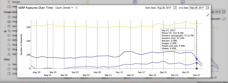 As we optimize for our various SERP features, not only can we track our progress, but we can keep an eye on the general happenings of features on our SERPs.