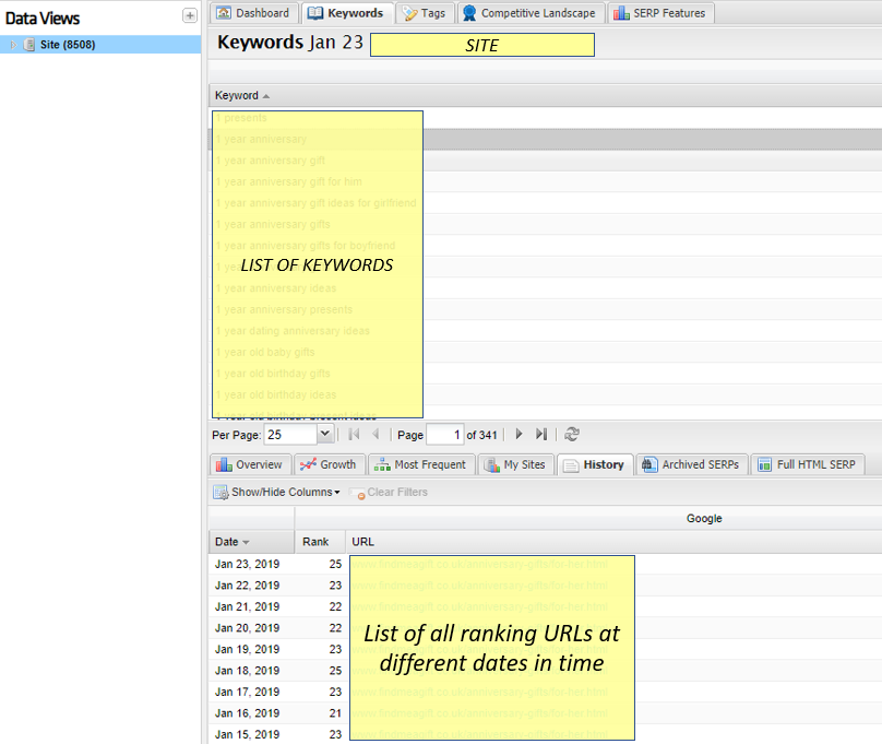 One caveat of these kinds of ranking tools is that this data is often accessible only by keyword and will require data analysis. This means it may take a bit of time to check all keywords involved in this cannibalisation, but the insights you’ll glean are well worth the effort.