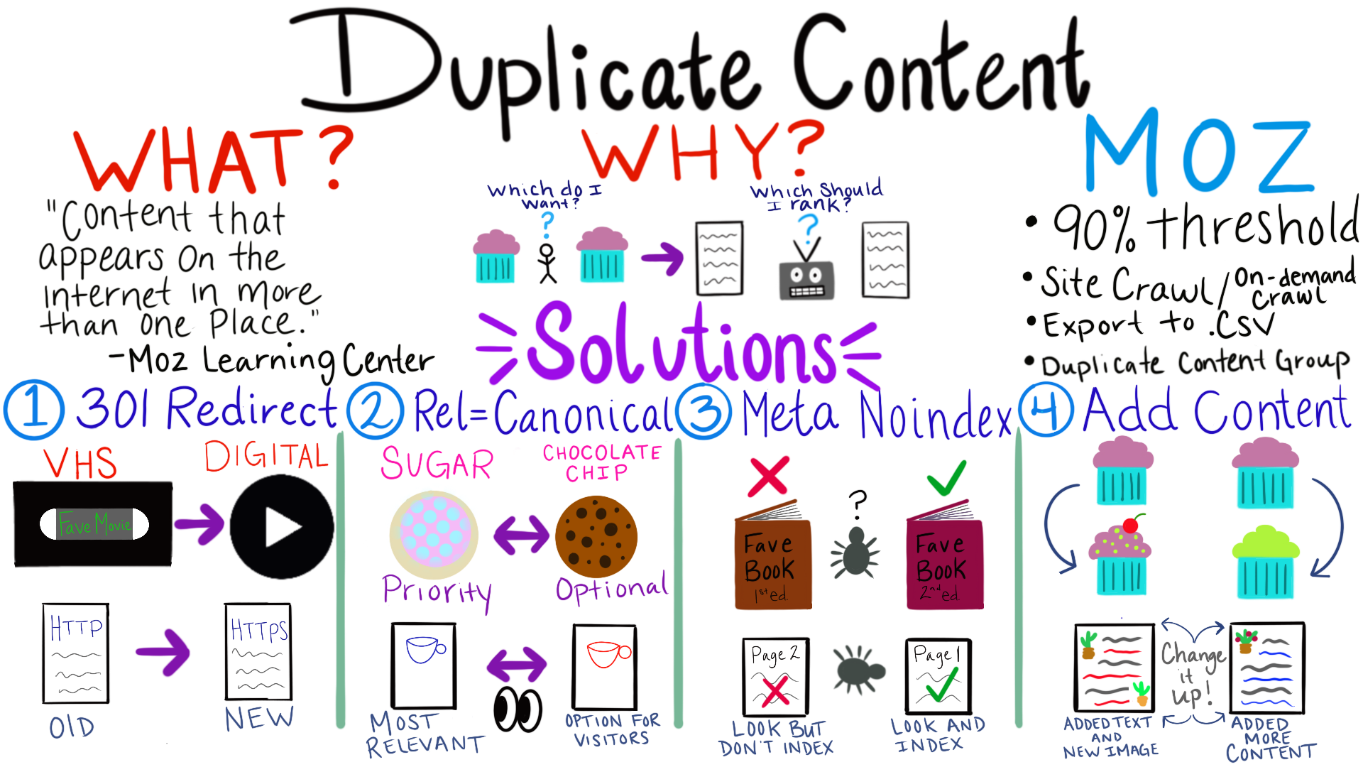 Hey, Moz fans. Welcome to another edition of Whiteboard Friday. I’m Meghan, and I’m part of the Learn Team here at Moz. Today we’re going to talk a bit about duplicate content.