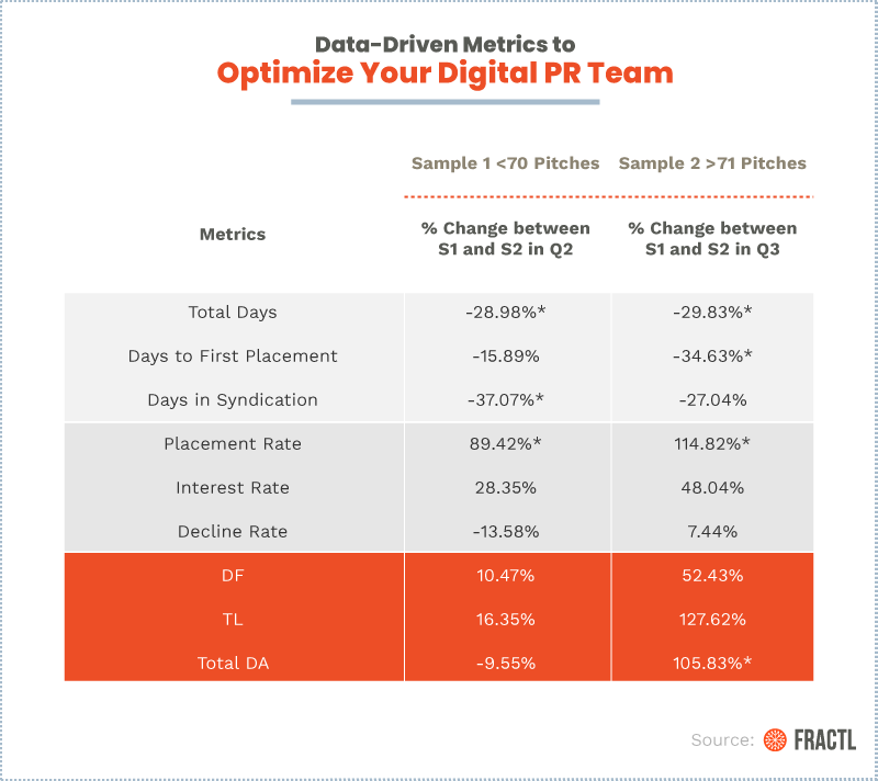 Over the past six years, our team at Fractl has studied the art of mastering content marketing press coverage. Before moving into Agency Operations, I on-boarded and trained over a dozen new associates for our digital PR team within a year as the Media Relations Manager. Scaling a team of that size in a such a short period of time required hands-on training and a clear communication of goals and expectations within the role — but what metrics are indicative of success in digital PR?