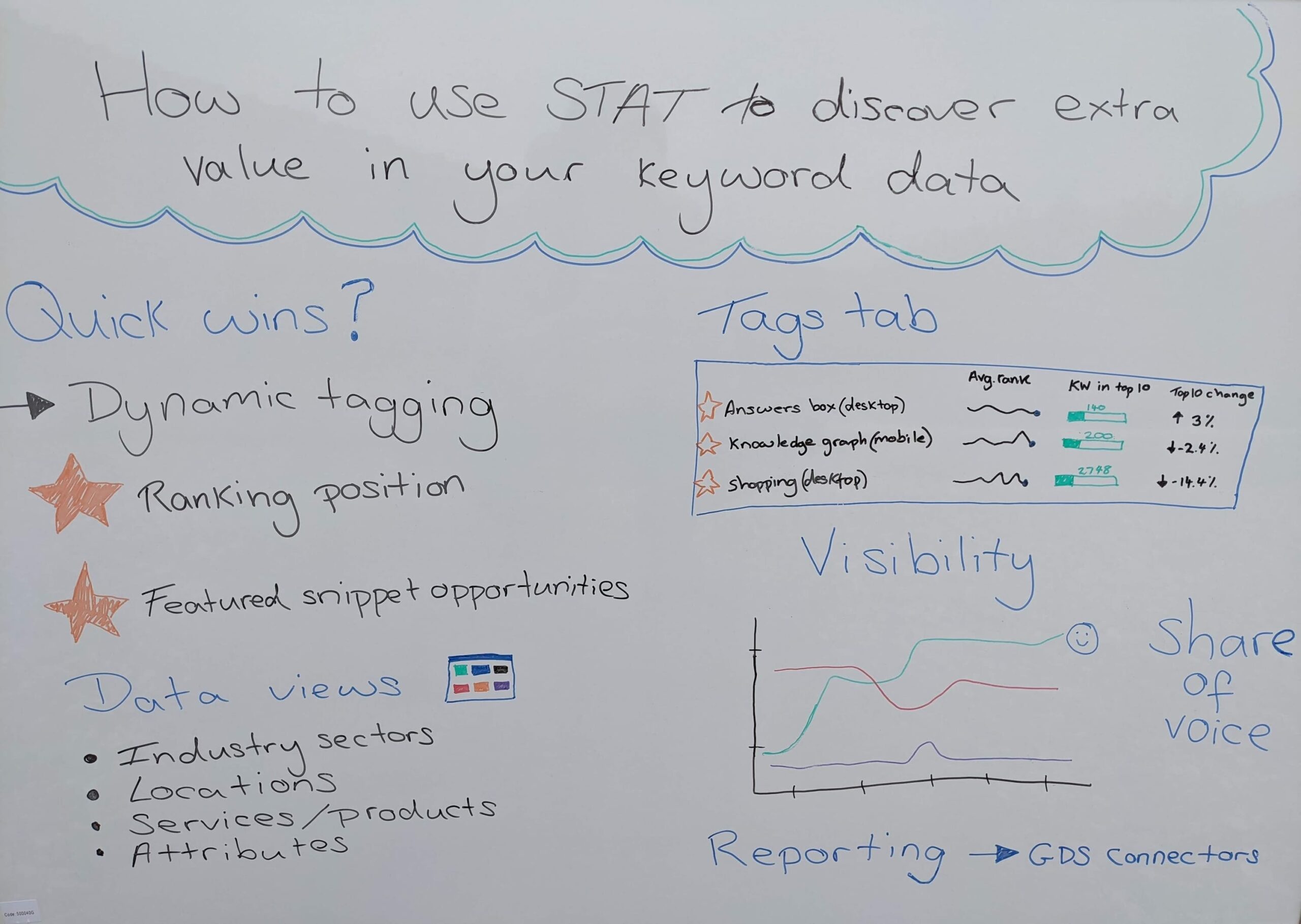 Hi and welcome to another edition of Whiteboard Friday. I’m Zoe. I work in the Learning team here at Moz, and my focus is on developing educational materials and resources to promote understanding of our STAT tool. Today, we’re going to take a look at how you can use STAT to surface additional insights in your keyword data. Looking for value in your keyword data is important if you’re a brand trying to stay visible and on top of the forever-changing SERPs. Looking for those additional insights is paramount to making informed SEO decisions.