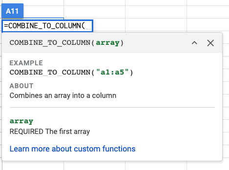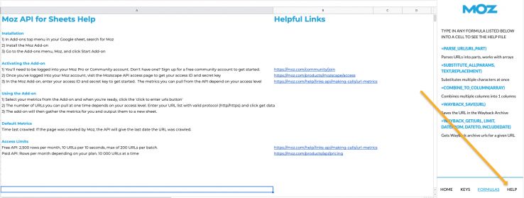 There are a few helpful custom formulas that come with the add-on. Simply click on the “formulas” tab at the bottom of the add-on to see them. As you type any of these formulas, a help file will pop up to guide you.