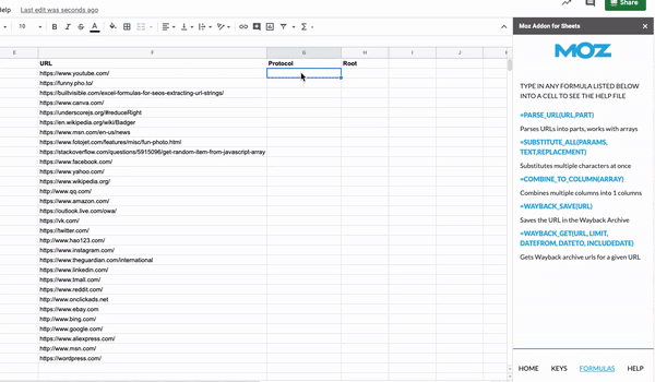 For example, use the =PARSE_URL formula to quickly parse URLs into the root, path, anchor, and more without having to write novel-length formulas or remember difficult regular expressions.