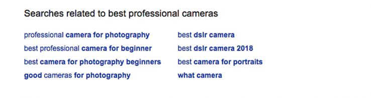 No less than eight related searches sit at the very bottom of each SERP and, when clicked, become the search query of a new SERP. These help to refine or expand on the original query.