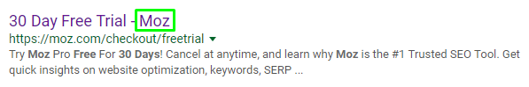 • Branding: At Moz, we love to end our title tags with a brand name mention because it promotes brand awareness and creates a higher click-through rate among people who are familiar with Moz. Sometimes it makes sense to place your brand at the beginning of the title tag, such as on your homepage, but be mindful of what you are trying to rank for and place those words closer toward the beginning of your title tag.