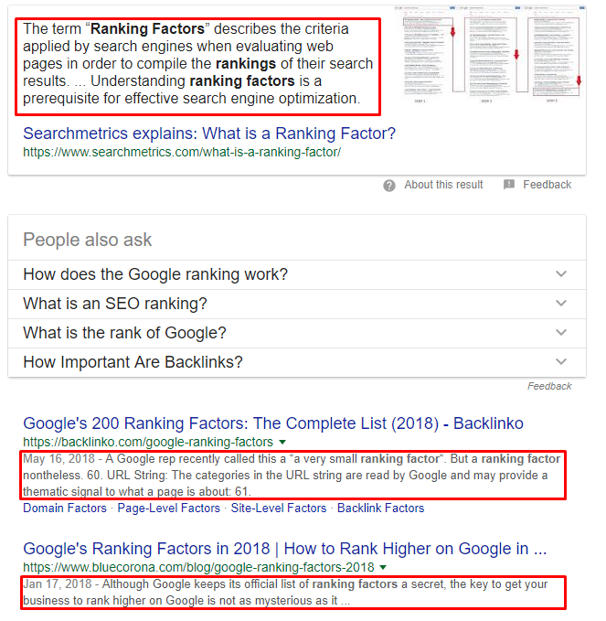 Screenshot of a featured snippet