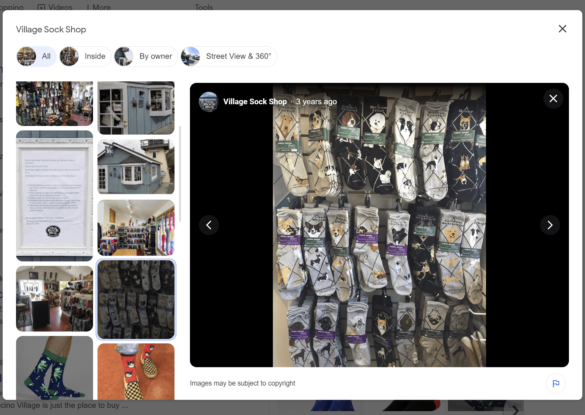 For the past few years, I’ve strongly encouraged local businesses to photograph their most popular goods and services and add these pictures to their Google Business Profiles, but shelfies are different – instead of snapping a single product, take photos of your shelves and displays to give a sense of the abundance and character of what you vend. One look at this on a local business listing, and any customer would immediately know that this is a great nearby place to head for socks: