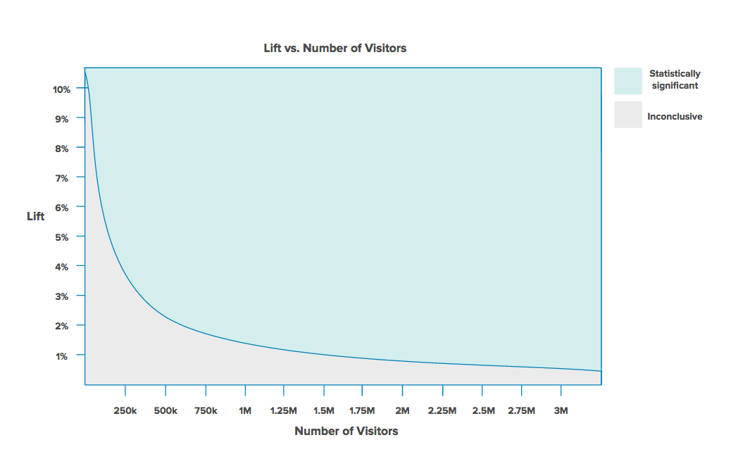 The key term here is “potential” performance improvement. If your test yields a winning variation, and you implement it across your site, don’t expect the same results to happen as you saw during the test. The true goal for all testing is to introduce new ideas to your site with very low risk and potential for improved metrics.