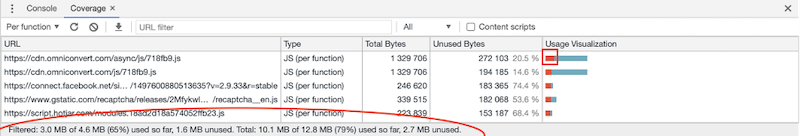 Click the load function and you’ll see how much JavaScript is not being used on your webpage.