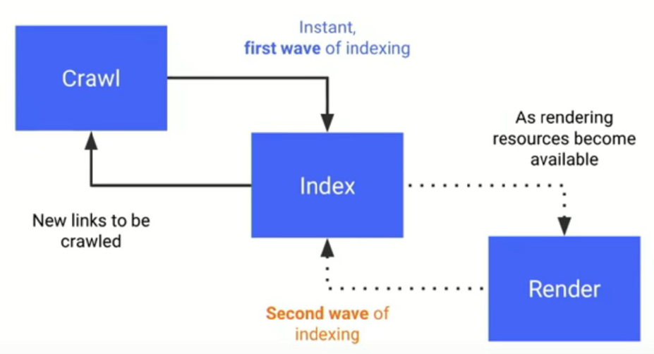 In other words, Google crawls and indexes content in two waves: