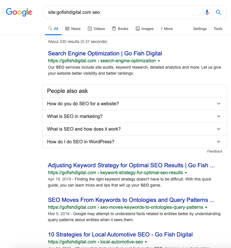 Copy and paste any content that you’re not sure that Google is indexing after the site: operator and your domain name, and then press the return key. If you can find your page in the search results, then no worries! Google can crawl, render, and index your content just fine. If not, it means your JavaScript content might need some help gaining visibility.