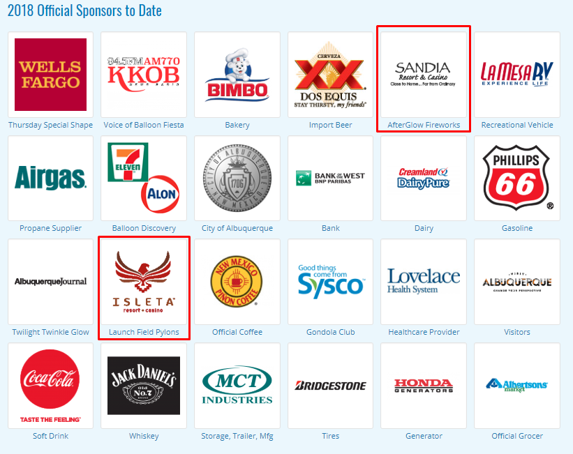 And let’s not forget how we found out about Isleta and Sandia in the first place: the Albuquerque International Balloon Fiesta! Event sponsors are featured on an “official sponsors” page with links to their websites. This is a classic, locally relevant opportunity for any Albuquerque business.