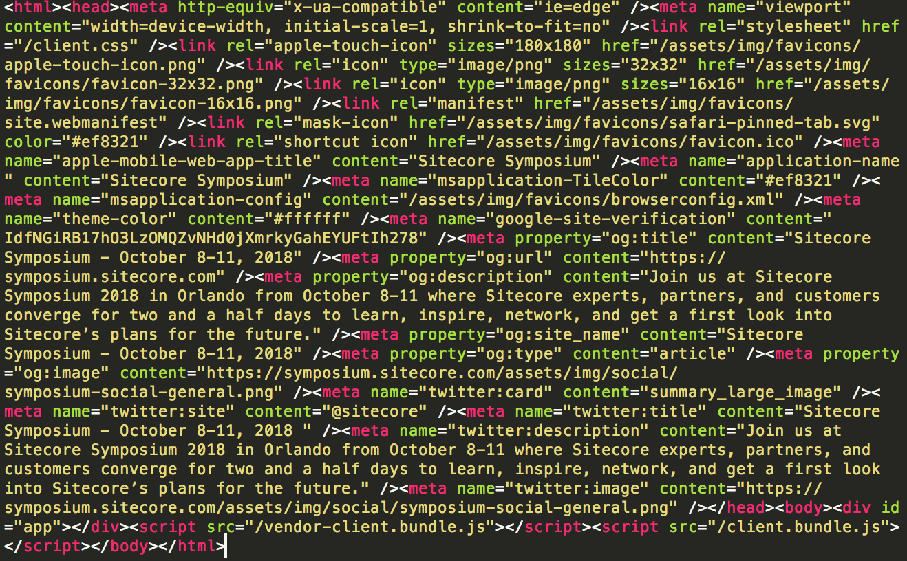 The fix here is to instead have Sitecore’s landing page load on their server. In other words, we want to take the heavy lifting off of Googlebot, and put it on Sitecore’s servers. This will ensure that when Googlebot comes to the page, it doesn’t have to do any heavy lifting and instead can crawl the rendered HTML.