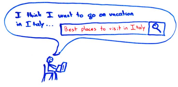 But Google has made such a significant number of advances in the last 5 to 10 years that searcher satisfaction is now a huge part of how you can be successful in SEO. I’ll explain what I mean here. Let’s say our friend Arlen here is thinking about going on vacation to Italy.