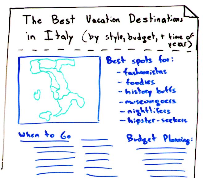 So if I’m planning my page, what is the best page I could possibly craft to try and rank for “best places to visit in Italy,” which is a very popular search term, extremely competitive? I would think about obviously there’s all sorts of keyword stuff and on-page optimization stuff, which we will talk about in Part IV, but my priorities are answer the searcher’s primary questions comprehensively and authoritatively. If I can do that, I am in good shape. I’m ahead of a lot of the pack.