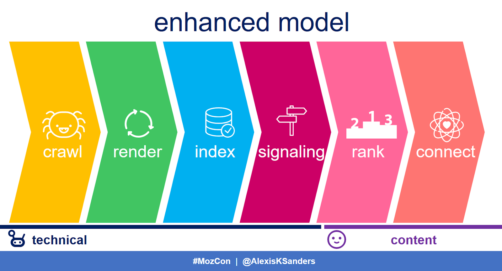 Like so many classic triads (think: primary colors, the Three Musketeers, Destiny’s Child [the canonical version, of course]) the traditional SEO model, known as the crawl-index-rank method, packages SEO into three distinct steps. At the same time, however, this model fails to capture the breadth of work that we SEOs are expected to do on a daily basis, and not having a functioning model can be limiting. We need to expand this model without reinventing the wheel.