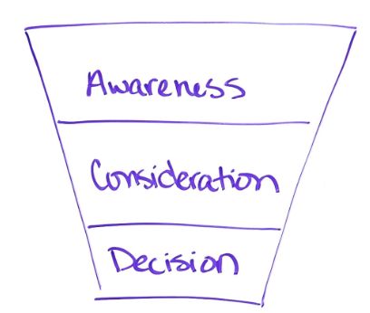 So my pitch is SEO is marketing, just with search engines. So we have the funnel here — awareness, consideration, and decision.