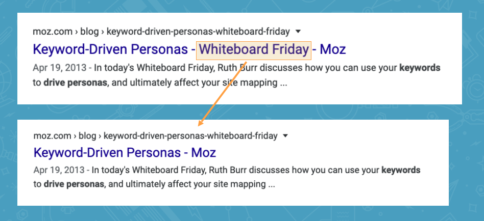 Crazy, right? If it worked by removing “Whiteboard Friday” would we see the same uplift by removing “Moz?”