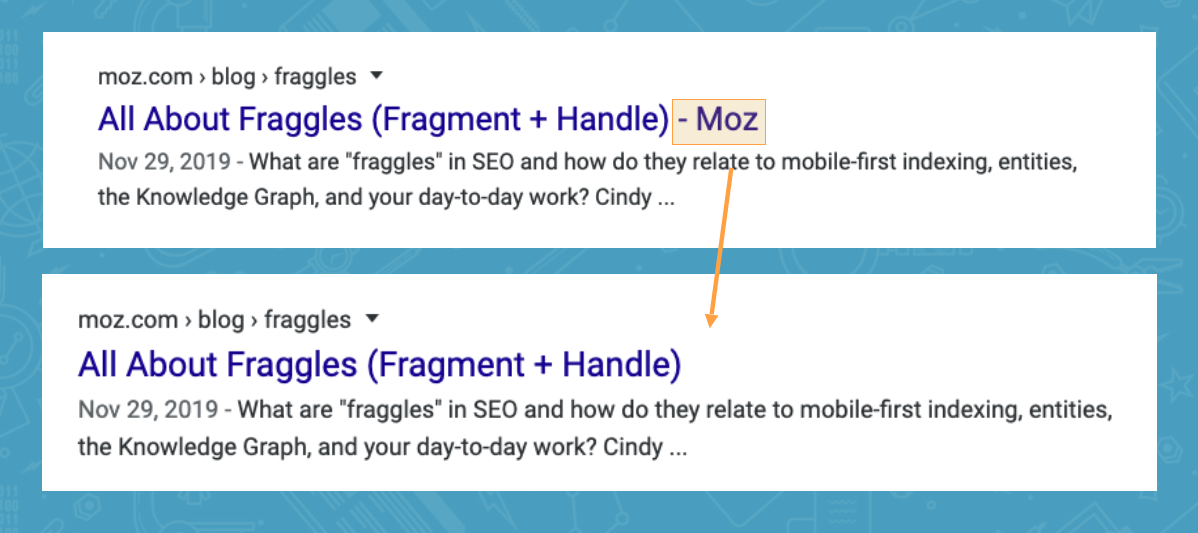 For this A/B experiment, we did exactly that—removing the word “Moz” from 50% of our titles and measuring the results.