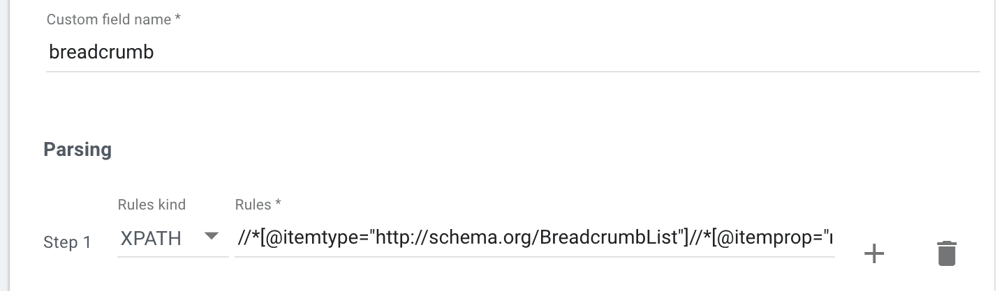 Below, you can see that it’s possible to extract breadcrumb data as a series of values by using XPath, and setting this up as a custom field. This allows you to see the data as a separate field once a crawl is finished.