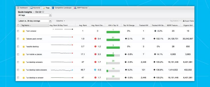 Because we use data views and tags a lot, this has been a neat addition for us. The ability to quickly view those tags and how the keywords within are progressing is immensely valuable.