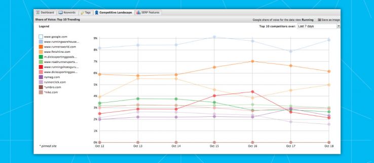 No search strategy is complete without an understanding of the wider search landscape. Specifically, this means keeping track of your and/or your client’s rankings when compared to others ranking around them.