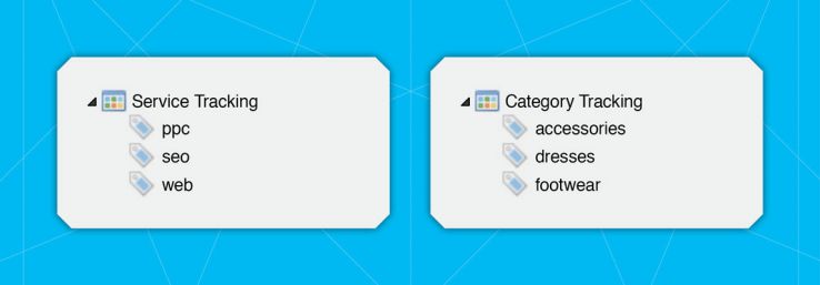 Our own dashboard (for Impression) uses this approach to split out our service-based keywords, so our data view is marked “Services” and the tags we track within are “SEO,” “PPC,” “web,” and so on. For one of our fashion clients, the data view relates to product categories, where the tracked tags include “footwear,” “accessories,” and “dresses.”