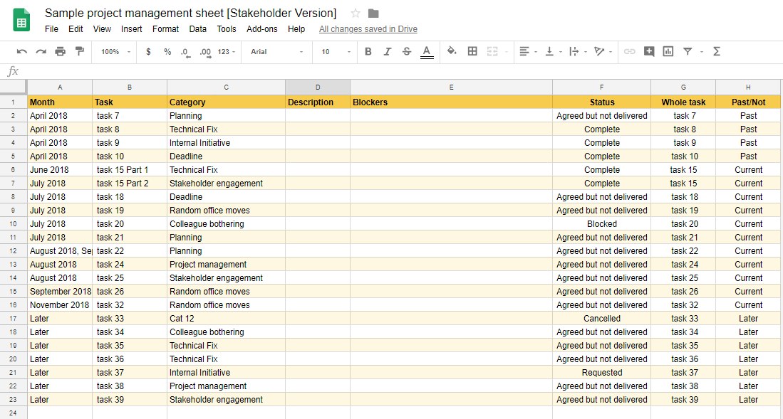 It’s also because everything after this is specific to using, changing, or understanding the project management sheets I’ve shared, so you need only read what follows if you’re interested in how to use the sheets or how I made them (I really do recommend dabbling with some uses of filter() and query(), particularly in conjunction with RegEx formulas).
