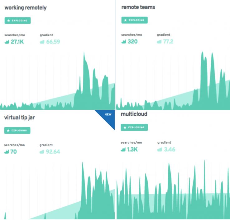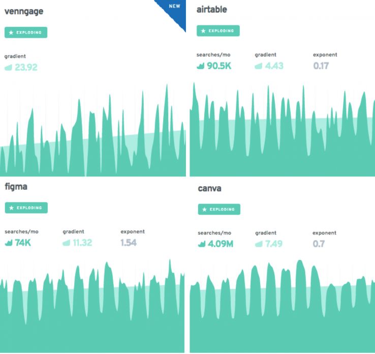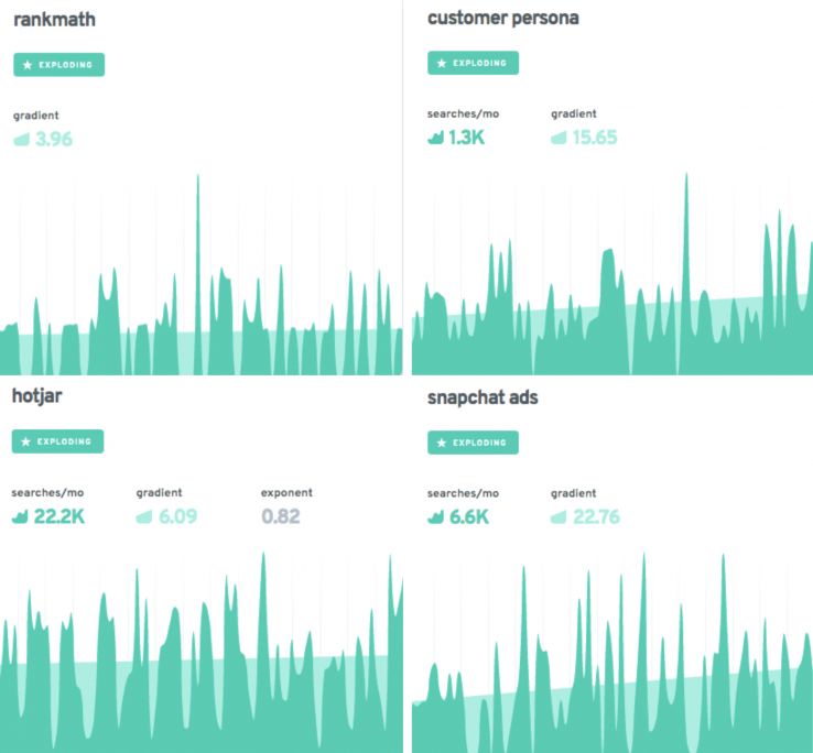 Exploding Topics, the new tool by Brian Dean (Backlinko) and Josh Howarth, explores topics that are surging in popularity but haven’t hit their peak.